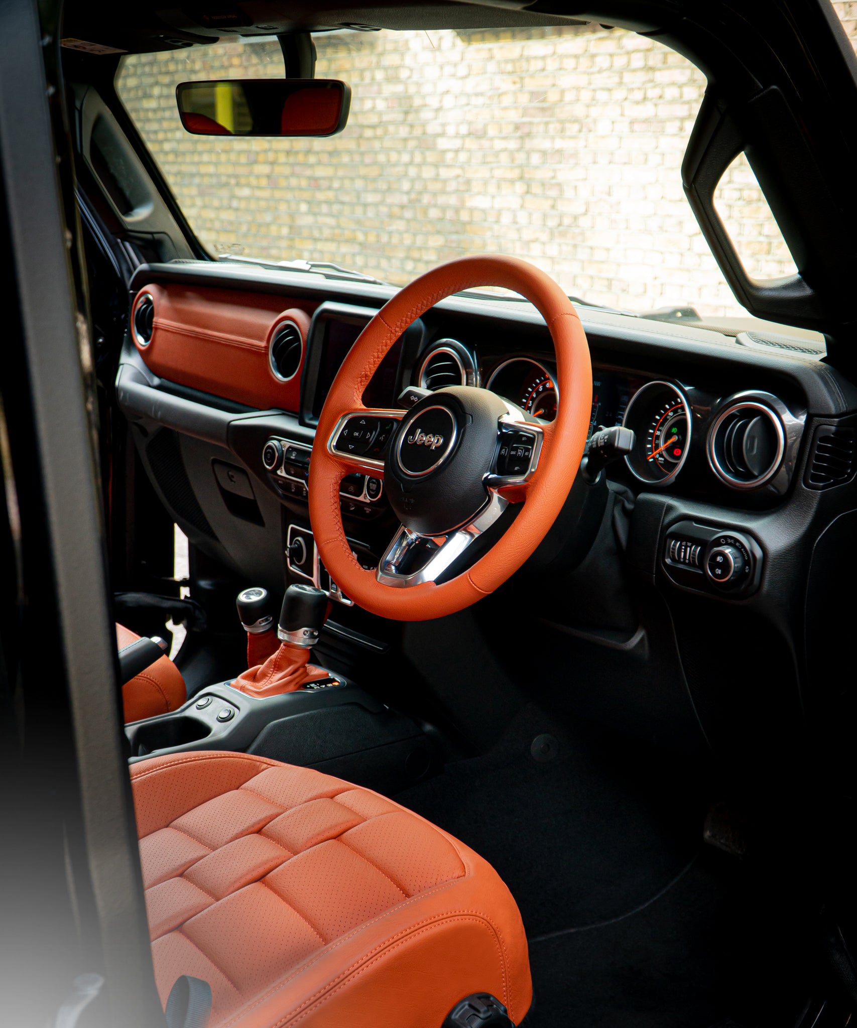 Add further luxury and refinement to the interior of the Jeep Wrangler JL with our extended leather interior package. The steering wheel and dashboard can now be trimmed in your choice of leather and stitching colour, taking personalisation to the ultimate level. Contact us for details.