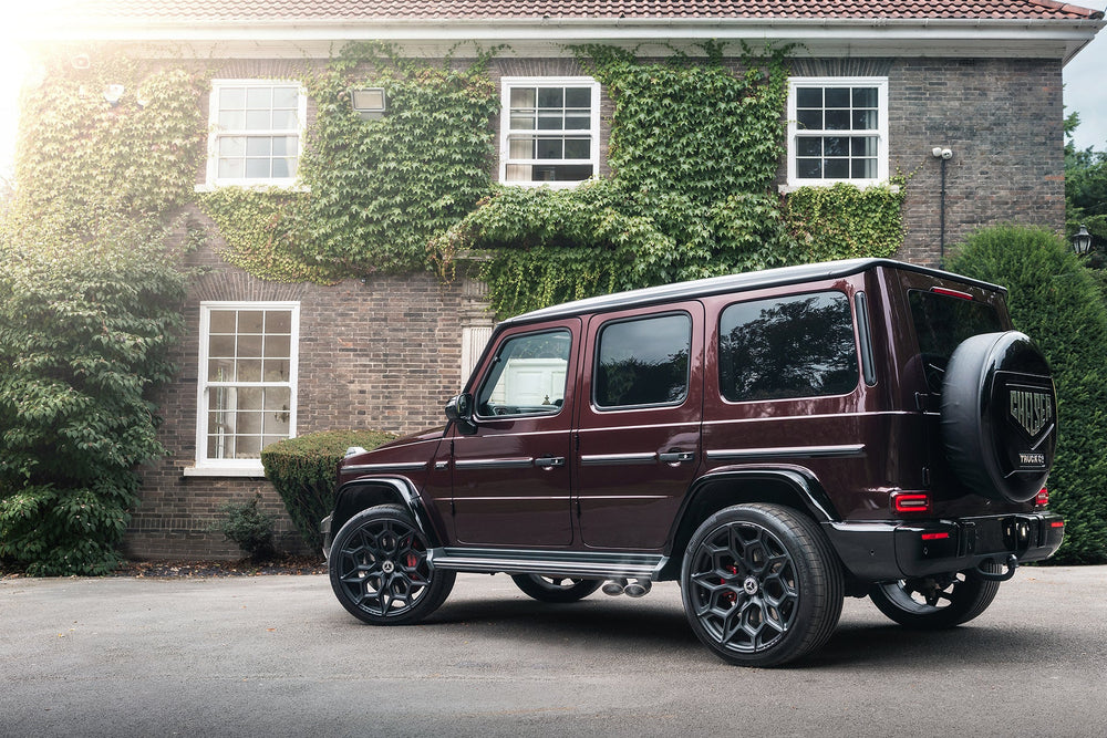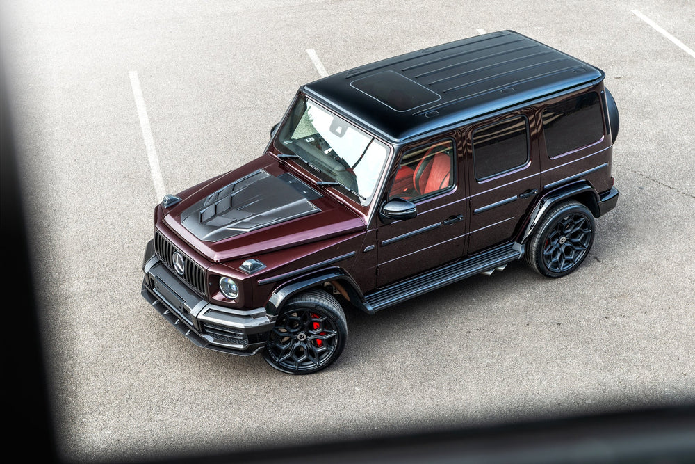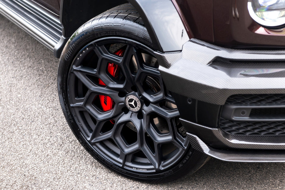 Complementing the classic, militaristic design of the original G-Class AMG, the new Chelsea Truck Company carbon styling package coupled with the Rubelitte G Manufaktur Red Metallic bodywork gives the Mercedes an aggressive yet stylish look.