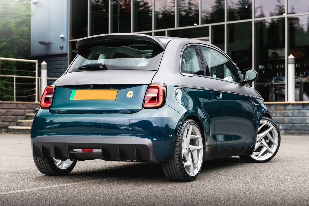 Fiat 500e Grey over Blue on Type 52 Wheels - Drive the Future in Style. Redefine your driving experience with the Fiat 500e in a stunning Grey over Blue finish, complemented by sleek Type 52 wheels. This electric marvel not only represents eco-friendliness but also exudes a sense of modern elegance. Key FeaturesZero-emission electric vehicle for a sustainable driving solution. Grey over Blue color scheme adds a contemporary and visually appealing touch. Enhance both aesthetics and performance with these sleek and modern wheels. Cutting-edge features for a seamless and eco-conscious driving experience. Why Choose the Fiat 500e?Drive the future without compromising style. The Fiat 500e Grey over Blue on Type 52 wheels offers a harmonious blend of eco-friendliness and sophisticated design, making every journey a statement of sustainability and elegance.Explore Today & Join the electric revolution with the Fiat 500e. Embrace sustainable elegance and efficient performance on every drive. These wheels are not original equipment manufacturer (OEM) - these are aftermarket wheels designed and manufactured by KAHN®.