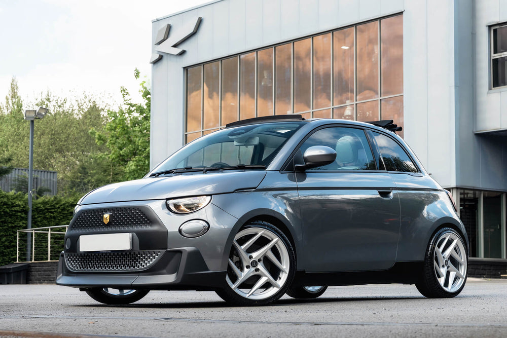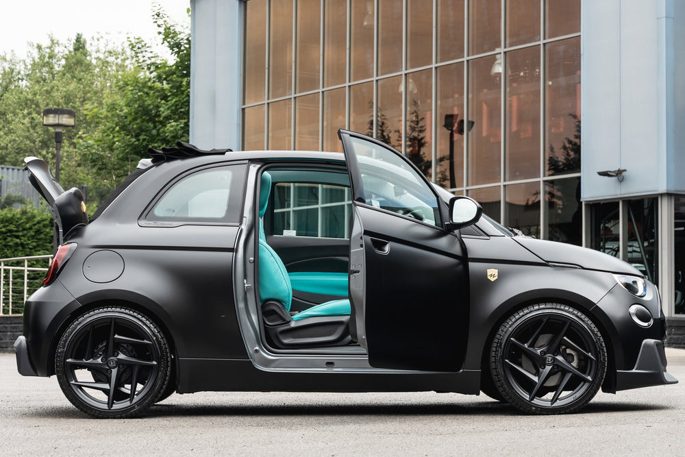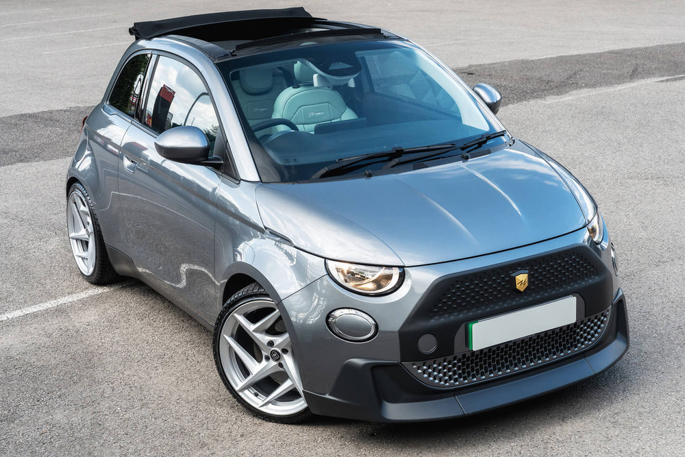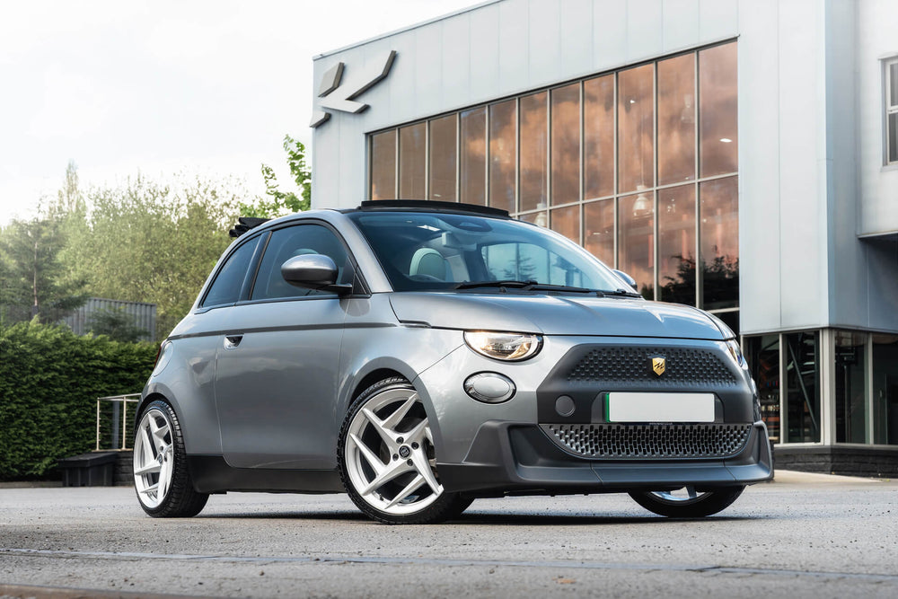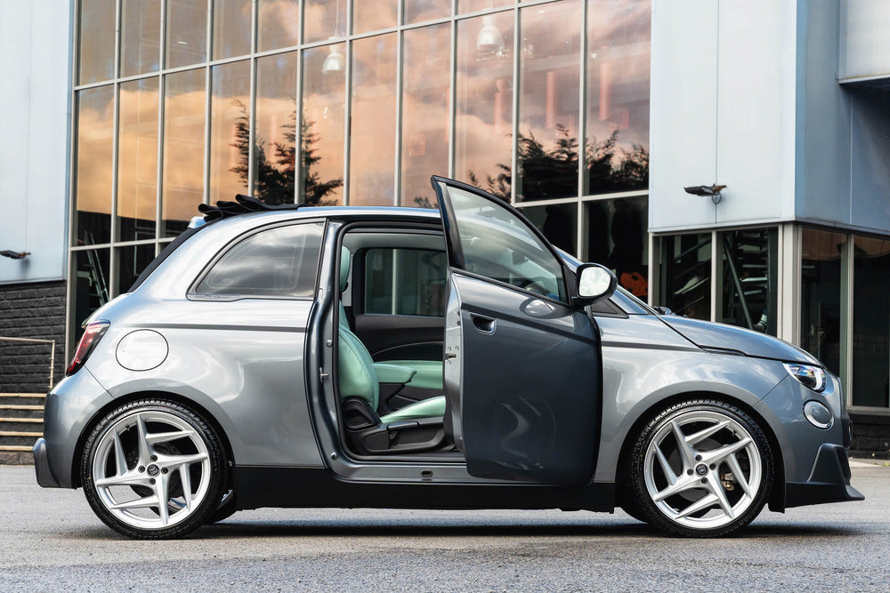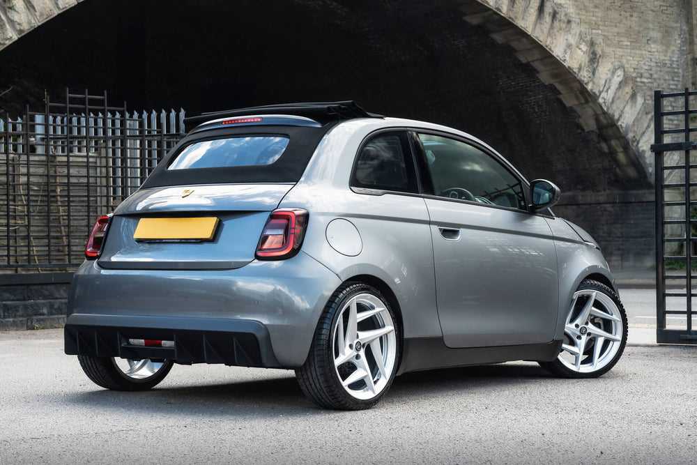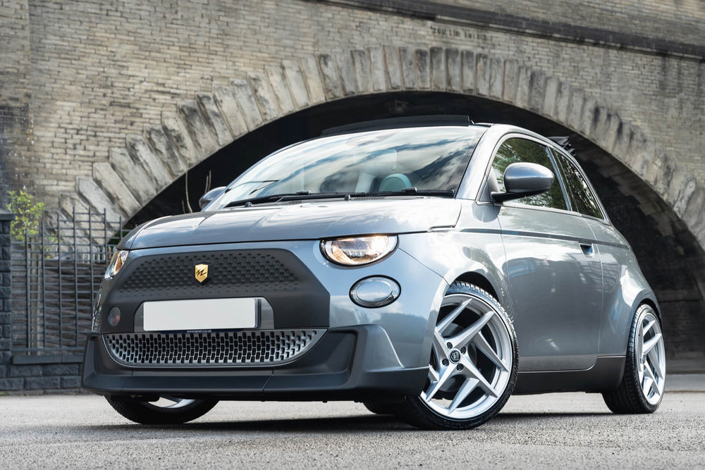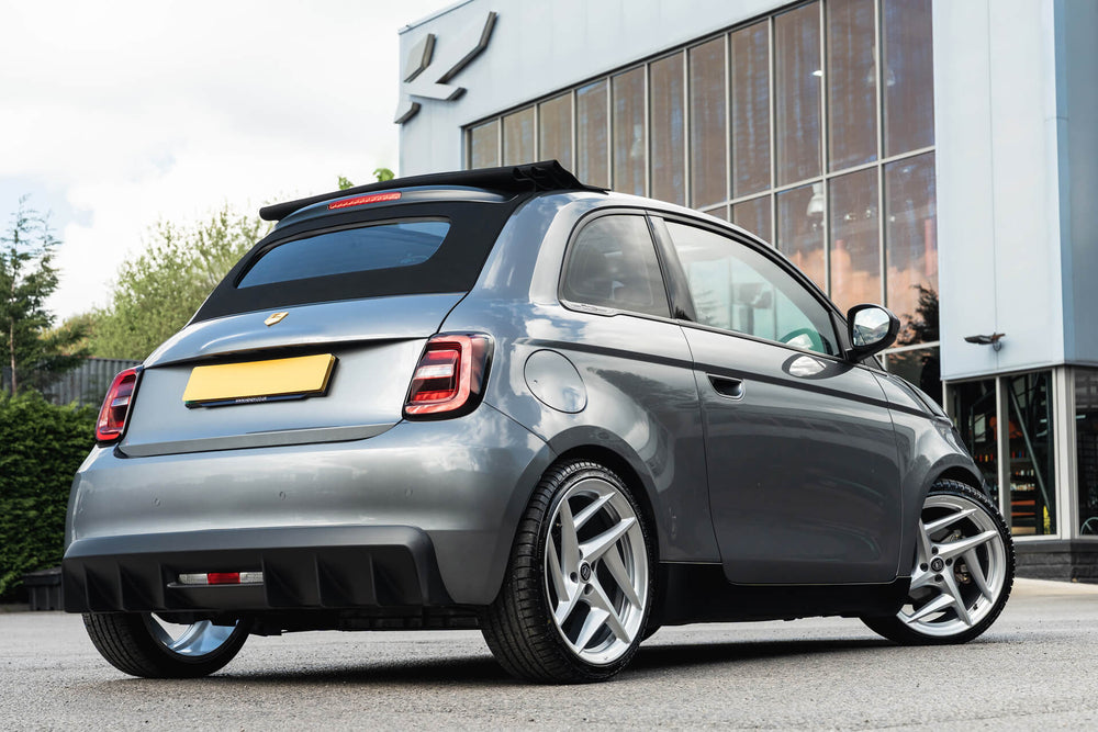 Fiat 500e Grey over Blue on Type 52 Wheels - Drive the Future in Style. Redefine your driving experience with the Fiat 500e in a stunning Grey over Blue finish, complemented by sleek Type 52 wheels. This electric marvel not only represents eco-friendliness but also exudes a sense of modern elegance. Key FeaturesZero-emission electric vehicle for a sustainable driving solution. The Mineral Grey colour scheme adds a contemporary and visually appealing touch. Enhance both aesthetics and performance with these sleek and modern wheels. Cutting-edge features for a seamless and eco-conscious driving experience. Why Choose the Fiat 500e?Drive the future without compromising style. The Fiat 500e Mineral Grey on Type 52 wheels offers a harmonious blend of eco-friendliness and sophisticated design, making every journey a statement of sustainability and elegance.Explore Today & Join the electric revolution with the Fiat 500e. Embrace sustainable elegance and efficient performance on every drive. These wheels are not original equipment manufacturer (OEM) - these are aftermarket wheels designed and manufactured by KAHN®.