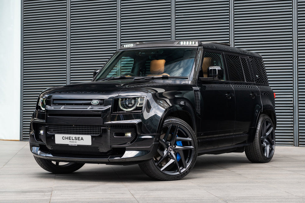 Uncover the mystery of urban exploration with our exclusive "Urban Enigma" Land Rover Defender 110 in Satin Black. This isn't just an SUV; it's a statement of sophistication and adventure. Imagine navigating city streets with unparalleled elegance, the sleek satin black exterior casting a shadow of mystery wherever you go.Key FeaturesSleek Satin Aesthetics The Defender 110 boasts a Satin Black exterior, effortlessly blending city chic with rugged allure. Urban Explorer's Choice Tailored for the city explorer, this Defender 110 is a symbol of both style and substance, designed to tackle urban landscapes with finesse. Midnight Marvel Immerse yourself in the captivating allure of the Satin Black finish, turning heads and setting trends wherever your journey takes you. Commanding Presence Experience the Defender 110's commanding presence, both on the streets and in the hearts of urban adventurers. Adventure-Ready Sophistication Beyond its sleek aesthetics, this Defender 110 is engineered for adventure, blending versatility with urban elegance.Ignite your urban exploration with the "Urban Enigma" Land Rover Defender 110 in Satin Black Glory. It's not just a vehicle; it's an invitation to redefine your journey with style and sophistication. Turn heads on the UK roads with Project Kahn's Land Rover Defender 110. A symbol of rugged sophistication, this iconic vehicle redefines your journey. Whether navigating city streets or conquering off-road terrains, the Defender 110 delivers unmatched style and capability. Enjoy your drive with the perfect blend of power and elegance. Explore the Land Rover Defender 110 with Project Kahn!