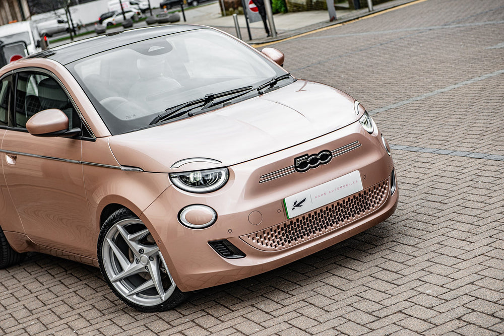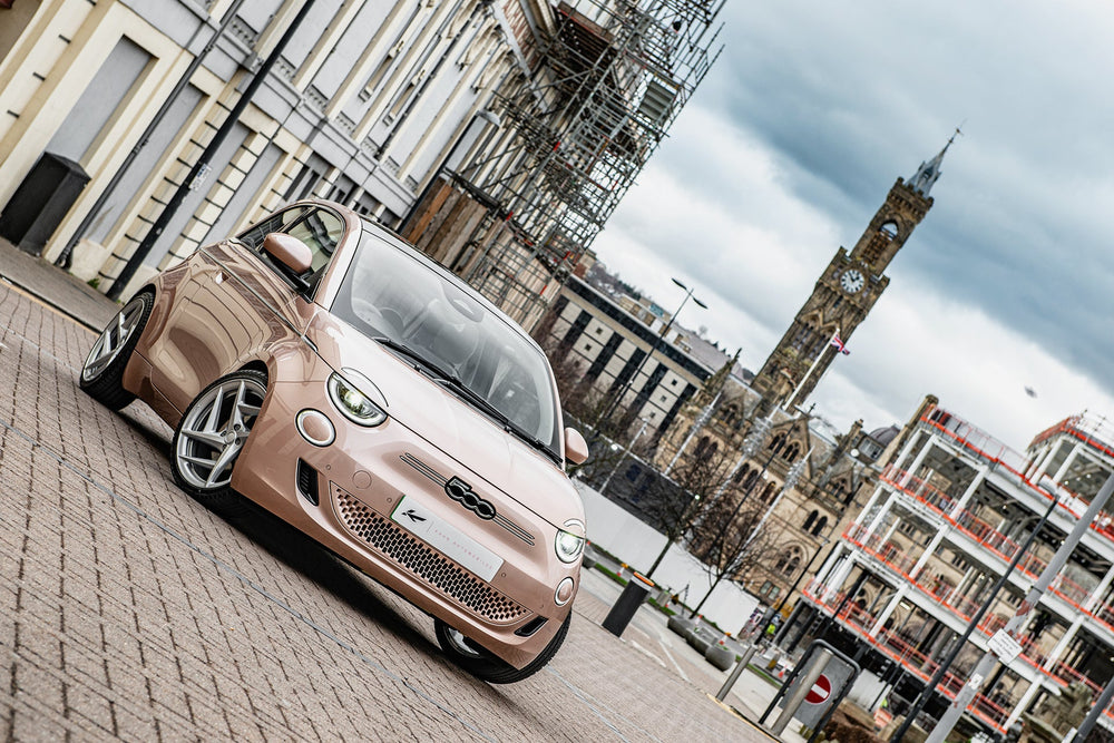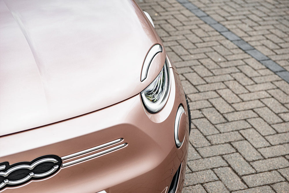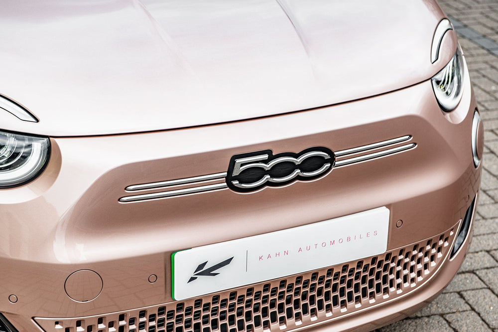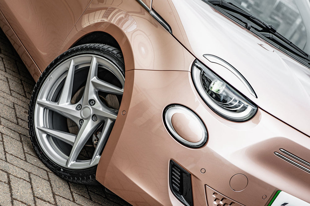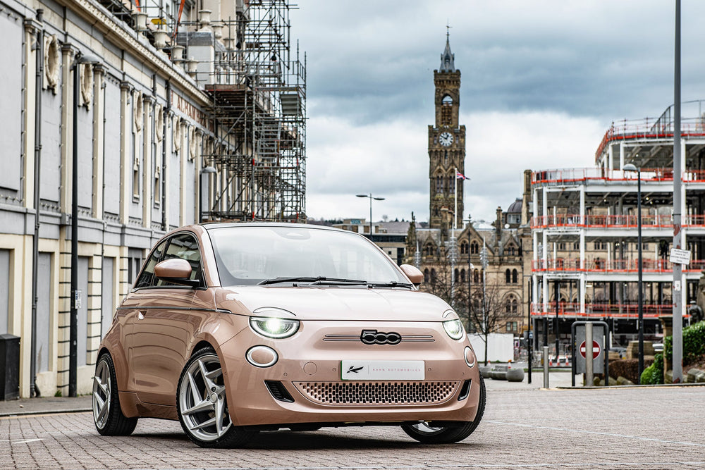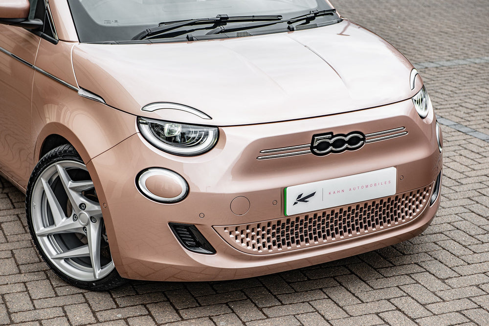 Fiat 500e Pink on Type 52 Alloy Wheels - Sustainable Chic at its FinestKickstart a new era of sustainable driving with the Fiat 500e in an eye-catching pink hue, complemented by sleek Type 52 alloy wheels. This electric marvel not only reduces your carbon footprint but also redefines chic on the road. Key FeaturesMake a statement with a standout pink color that turns heads. Type 52 Alloy Wheels enhance both aesthetics and performance with these modern and stylish wheels.Enjoy guilt-free driving with an eco-conscious electric vehicle. Cutting-edge features for a seamless and sustainable driving experience.Why Choose the Fiat 500e Pink?Enhance your driving experience with a dash of color and a commitment to sustainability. The Fiat 500e Pink on Type 52 alloy wheels offers a perfect balance of style and eco-consciousness, making each journey a fashion-forward statement.Explore Today - Join the sustainable chic movement. Explore the Fiat 500e Pink on Type 52 Alloy Wheels today and redefine your drive with a touch of vibrant elegance. These wheels are not original equipment manufacturer (OEM) - these are aftermarket wheels designed and manufactured by KAHN®.