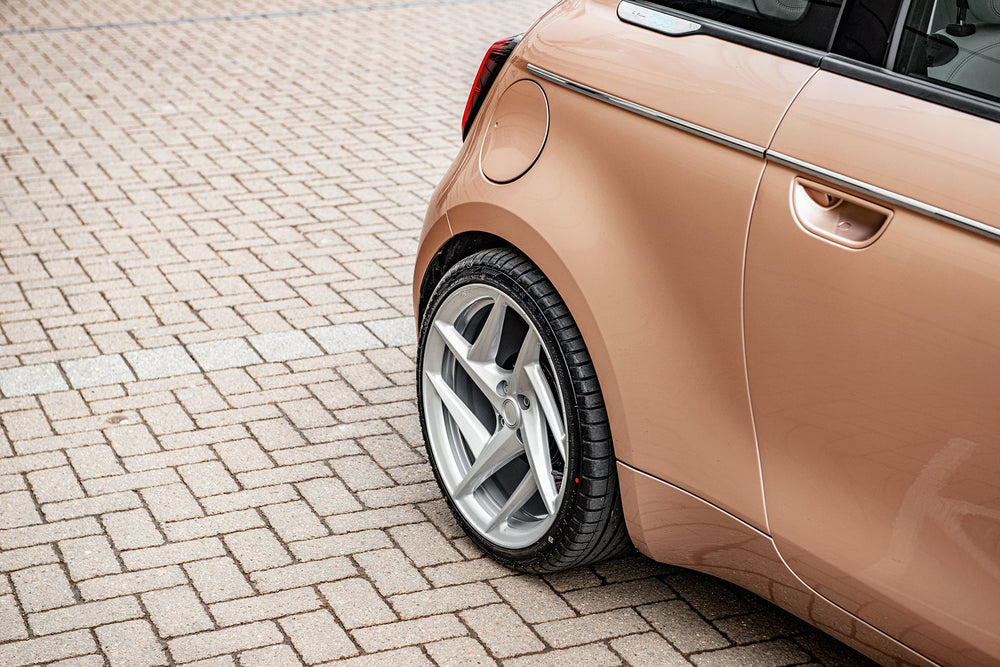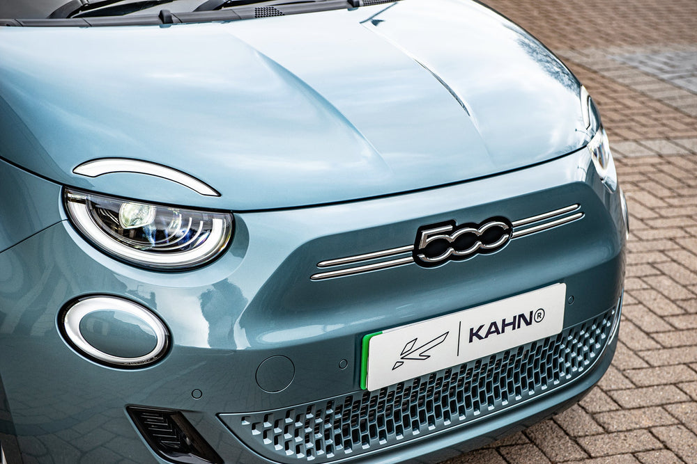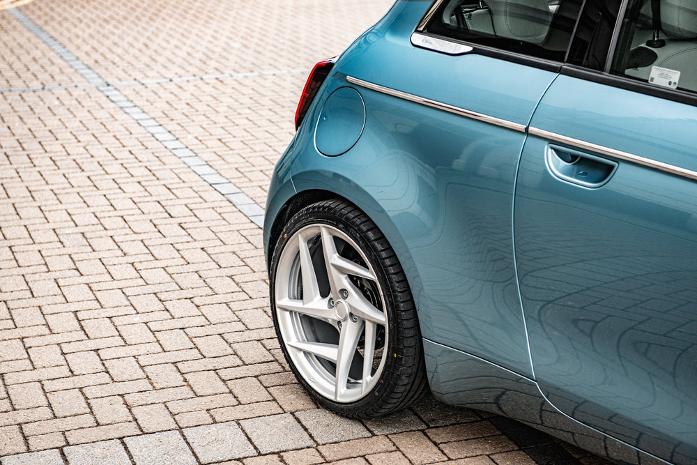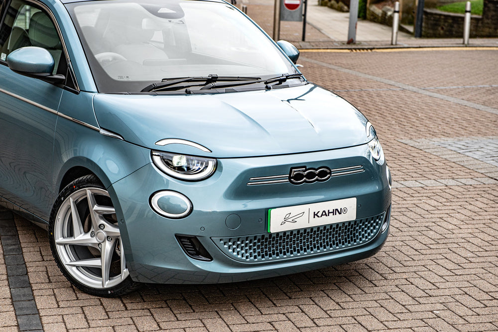 Fiat 500e Blue on Type 52 Alloy Wheels - Where Style Meets Sustainability. Redefine your journey with the Fiat 500e in a captivating blue shade, complemented by modern Type 52 alloy wheels. This electric wonder not only reduces your carbon footprint but also delivers a driving experience that seamlessly blends style and sustainability. Key FeaturesMake a statement with a bold blue color that captivates attention. Enhance both aesthetics and performance with these contemporary wheels. Enjoy guilt-free driving with an eco-conscious electric vehicle. Cutting-edge features for a seamless and sustainable driving experience. Why Choose the Fiat 500e Blue?Enhance your drive with a splash of color and a commitment to sustainable living. The Fiat 500e Blue on Type 52 alloy wheels is a perfect fusion of modern style and environmental consciousness, making every trip a journey into a greener future.Discover Today & Join the electric revolution. Explore the Fiat 500e Blue on Type 52 Alloy Wheels today and redefine your drive with a touch of sustainable sophistication. These wheels are not original equipment manufacturer (OEM) - these are aftermarket wheels designed and manufactured by KAHN®.