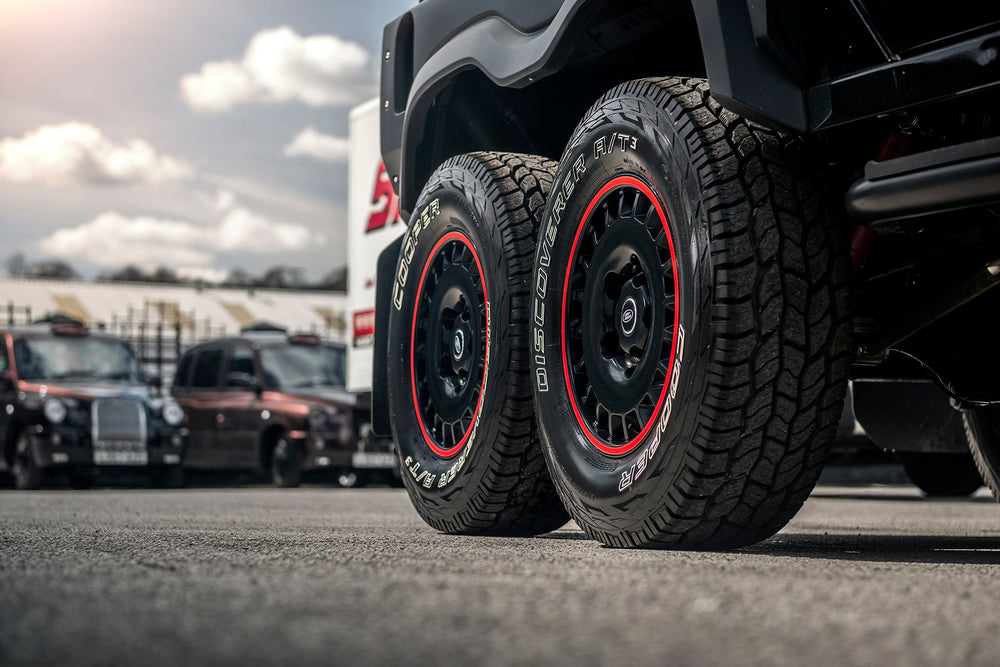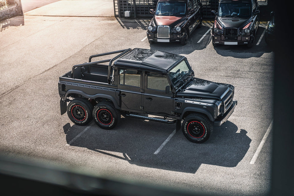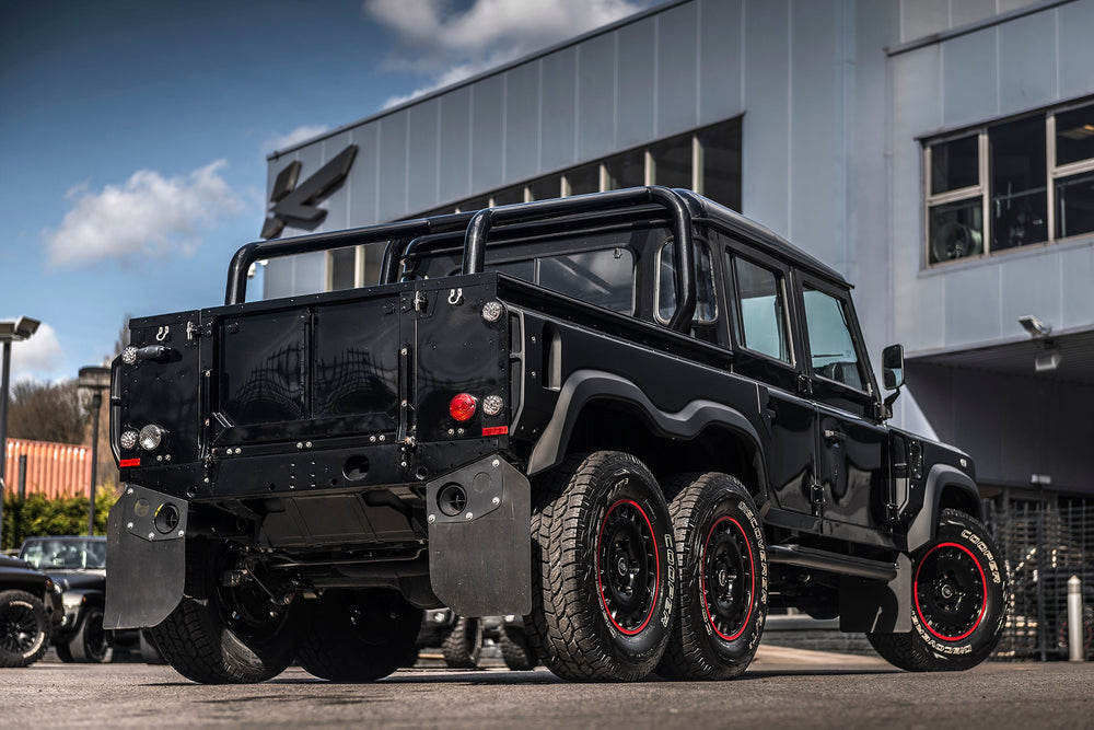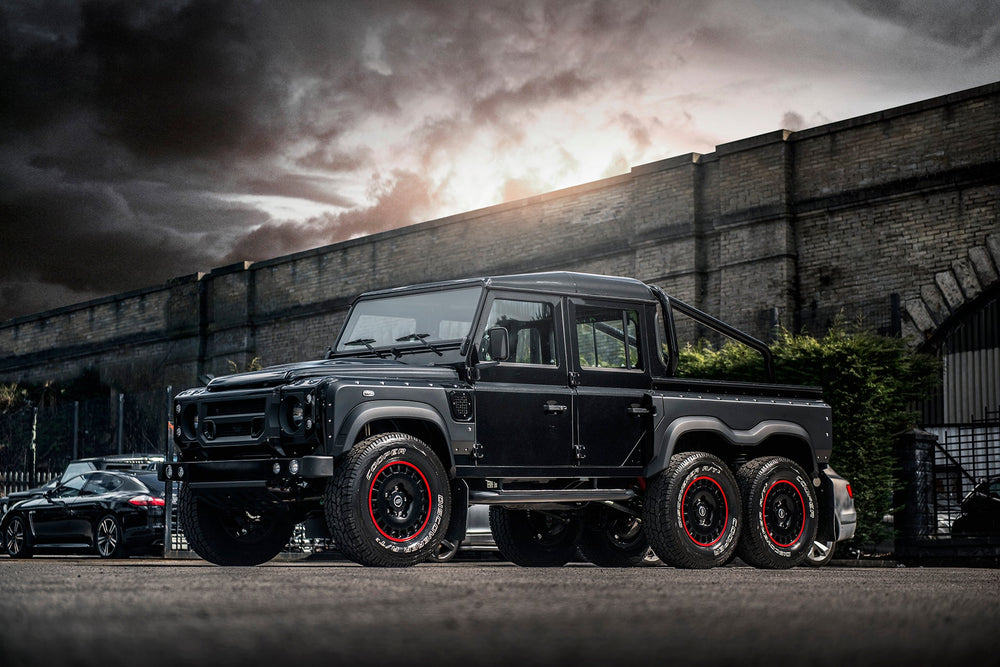 Command the road with the formidable Land Rover Defender 110 Flying Huntsman 6x6. The Volcanic rock colorway demands attention, and the 6 wheels ensure that you are instantly recognizable. These wheels are not original equipment manufacturer (OEM) - these are aftermarket wheels designed and manufactured by KAHN®.
