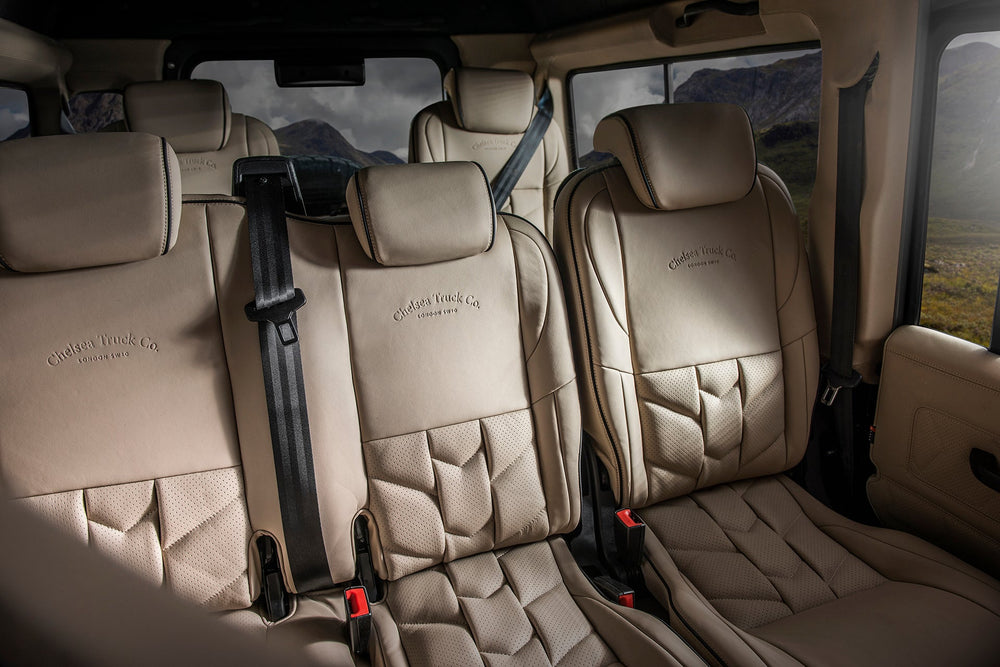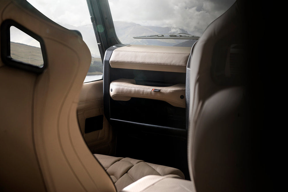 Immerse yourself in the timeless elegance of the Classic Land Rover Defender 110 Leather Interior - Cream Edition. Crafted for enthusiasts who value heritage and comfort, this interior is a tribute to the iconic Defender legacy.Timeless ComfortThe Cream Edition Leather Interior of the Classic Land Rover Defender 110 is not just about style; it's a testament to enduring comfort, providing a classic embrace for every journey.Heritage EleganceThe cream color palette pays homage to the Defender's heritage, creating an interior that seamlessly blends classic style with modern comfort.Attention to DetailEvery stitch and contour reflects the meticulous attention to detail inherent in the Classic Land Rover brand, ensuring an interior that stands out for its craftsmanship.Whether navigating urban landscapes or off-road terrains, the Cream Edition Leather Interior transforms your Defender into a stylish and comfortable haven.Upgrade to the Classic Land Rover Defender 110 with Cream Edition Leather Interior — where heritage meets modern luxury. Immerse yourself in a driving experience designed for those who appreciate the classics.