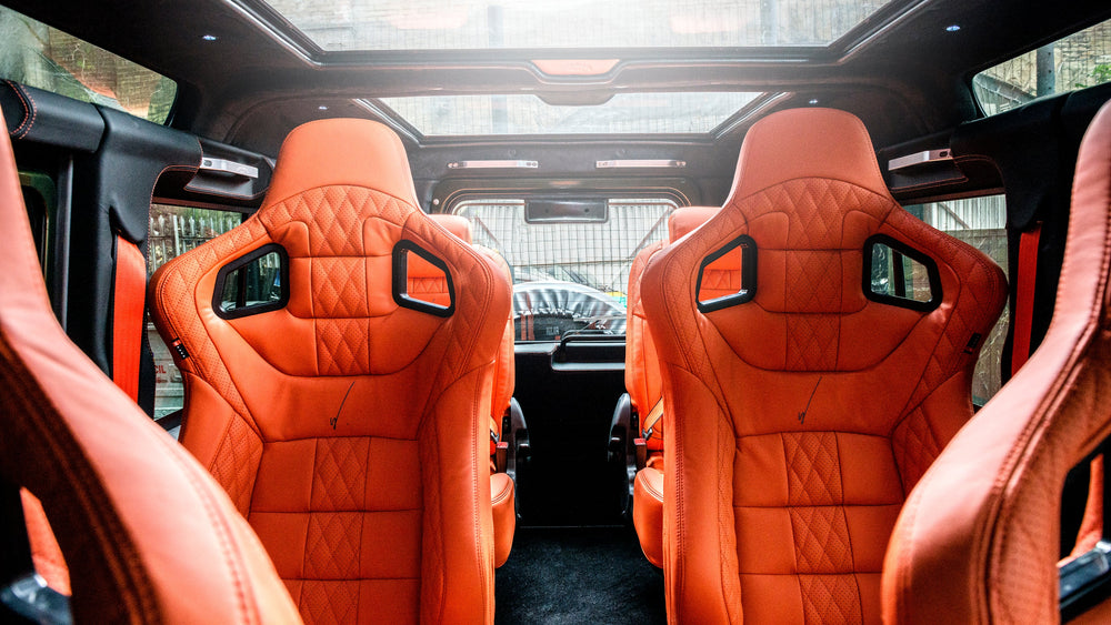 Step into a world where tradition meets modern flair with the Classic Land Rover Defender 110 Leather Interior - Orange Edition. Designed for those who appreciate a blend of timeless style and contemporary comfort, this interior is a nod to the Defender's enduring legacy.Comfort Beyond Time The Orange Edition Leather Interior of the Classic Land Rover Defender 110 isn't just about aesthetics; it's a commitment to timeless comfort, enveloping you in luxury on every journey.Vintage Vibes The rich orange hue pays homage to the Defender's heritage, infusing the interior with a touch of vintage charm that adds character to your driving experience. Crafted to Perfection Every stitch and contour showcases the meticulous craftsmanship synonymous with the Classic Land Rover brand, ensuring an interior that seamlessly blends elegance with durability.Whether navigating city streets or venturing off-road, the Orange Edition Leather Interior transforms your Defender into a stylish and comfortable sanctuary.Upgrade to the Classic Land Rover Defender 110 with Orange Edition Leather Interior — where classic design meets modern luxury. Immerse yourself in a driving experience tailored for those who appreciate timeless elegance.