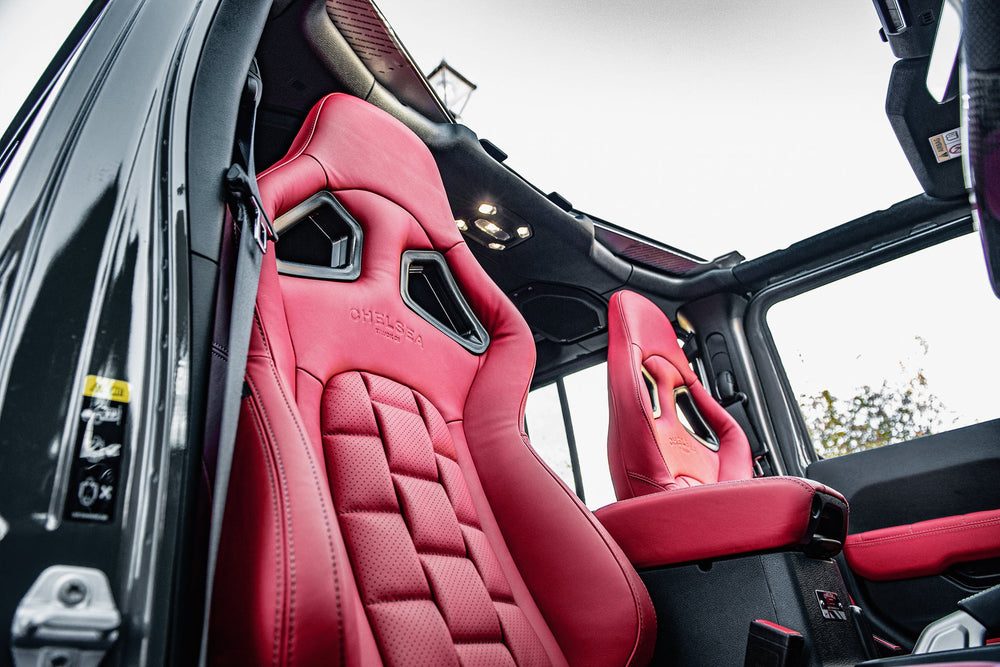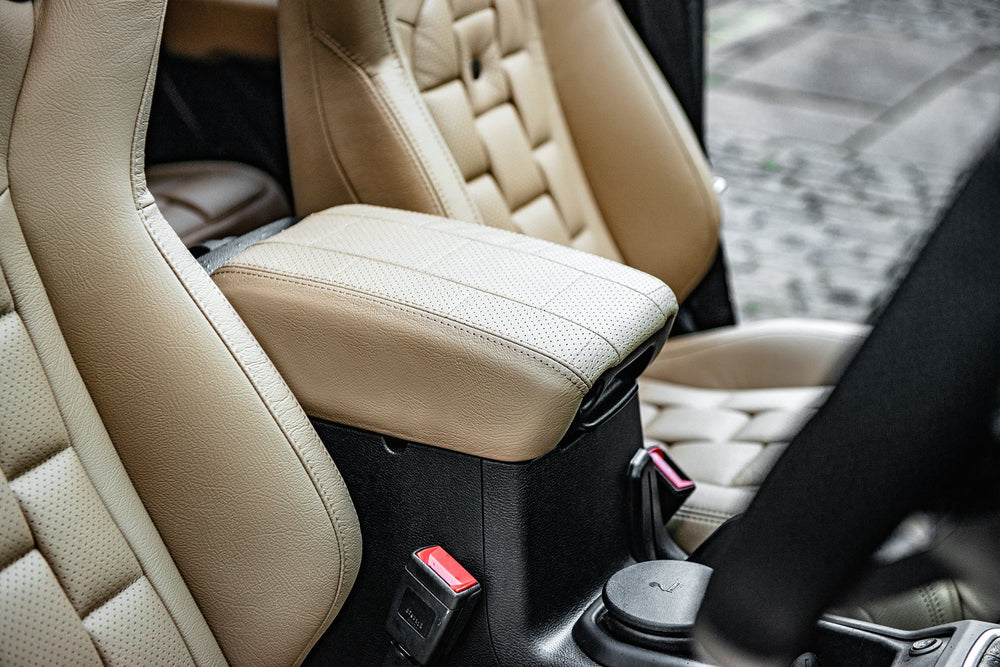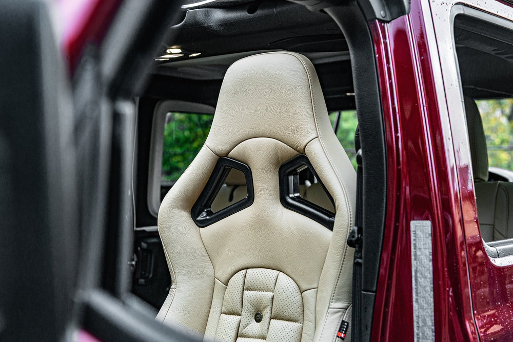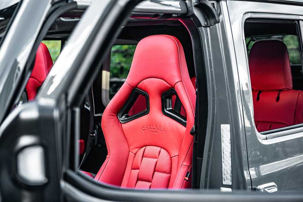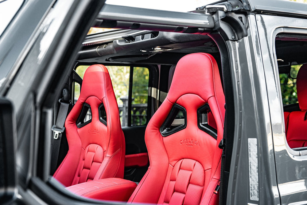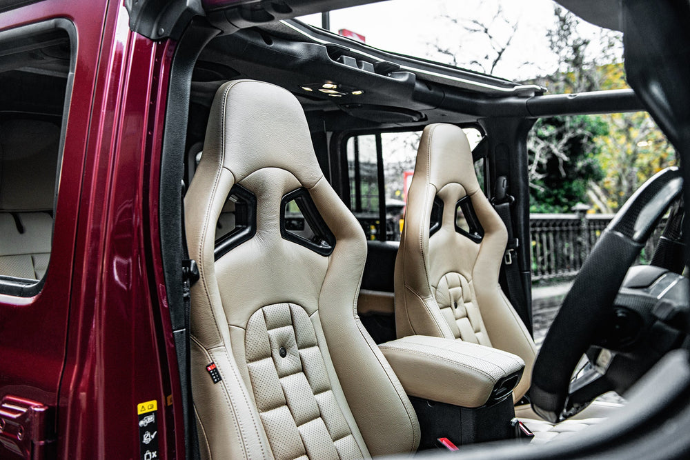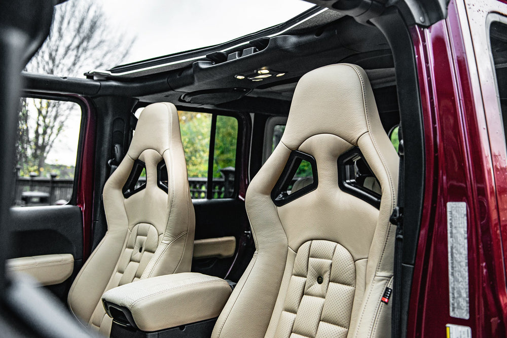 Scale up Your Jeep Wrangler JL 4 Door with a Luxurious Leather Sports Interior by Project Kahn. Transform your Jeep Wrangler JL 4 Door into a haven of luxury and style with Project Kahn's Leather Sports Interior. Crafted with precision and passion, this upgrade exudes elegance and comfort. Enhance every drive with the finest leather craftsmanship, designed to enhance your automotive experience. Explore the crest of automotive sophistication at Project Kahn.