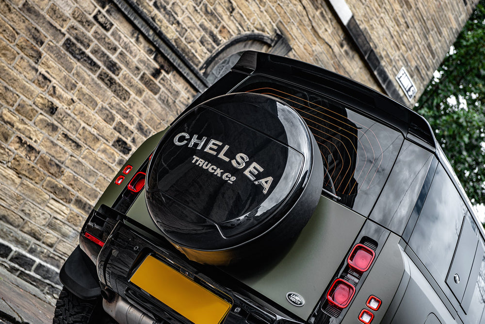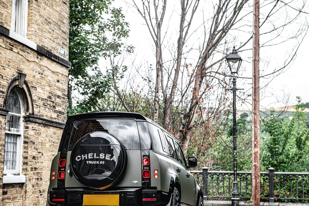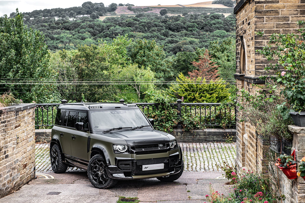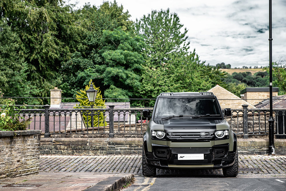 Enhance your adventures with our Land Rover Defender 110 featuring a sleek green exterior. Customize to your heart's content with Tailored Conversions.