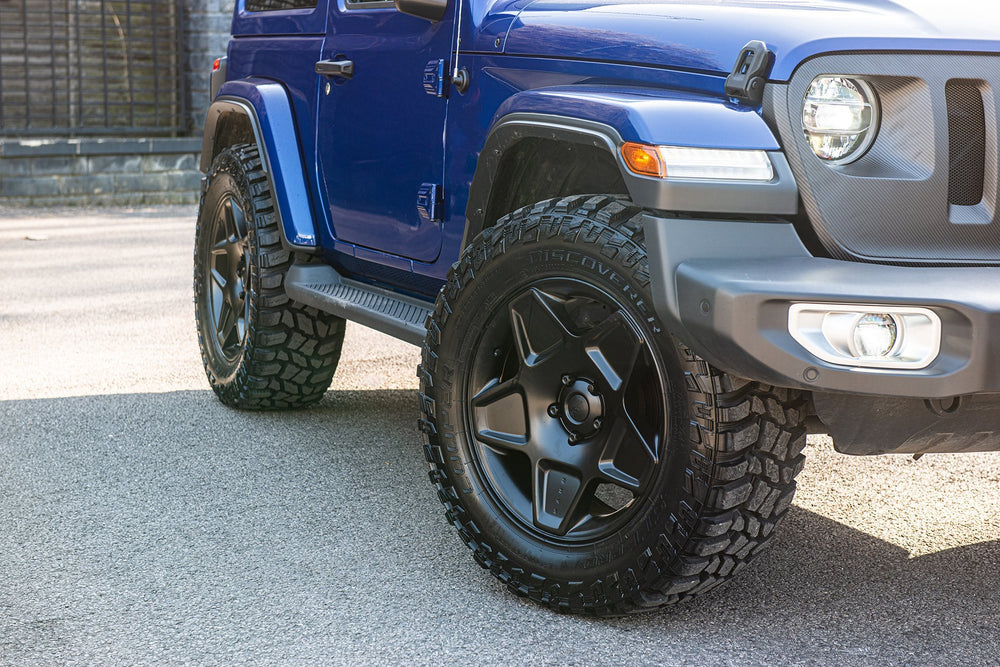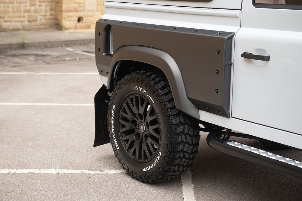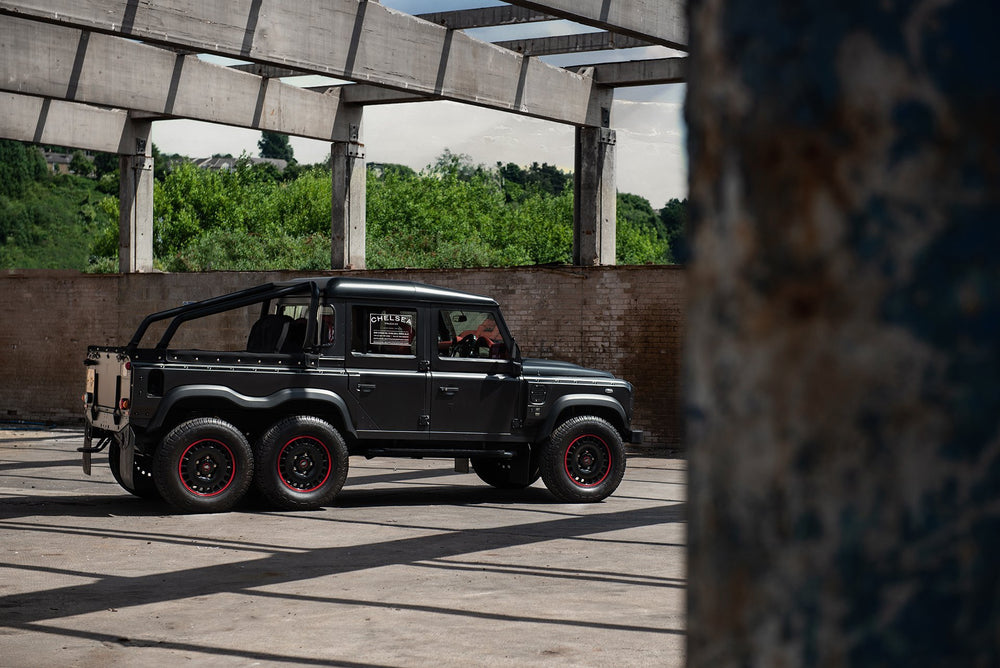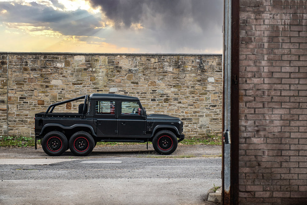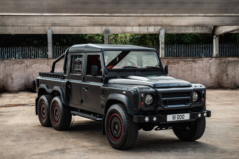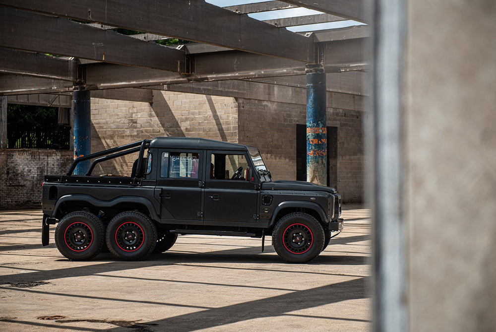 Command the road with the formidable Land Rover Defender Flying Huntsman 6x6. The Volcanic rock colorway demands attention, and the 6 wheels ensure that you are instantly recognizable. These wheels are not original equipment manufacturer (OEM) - these are aftermarket wheels designed and manufactured by KAHN®.