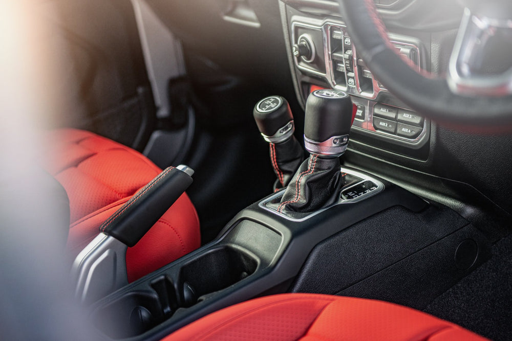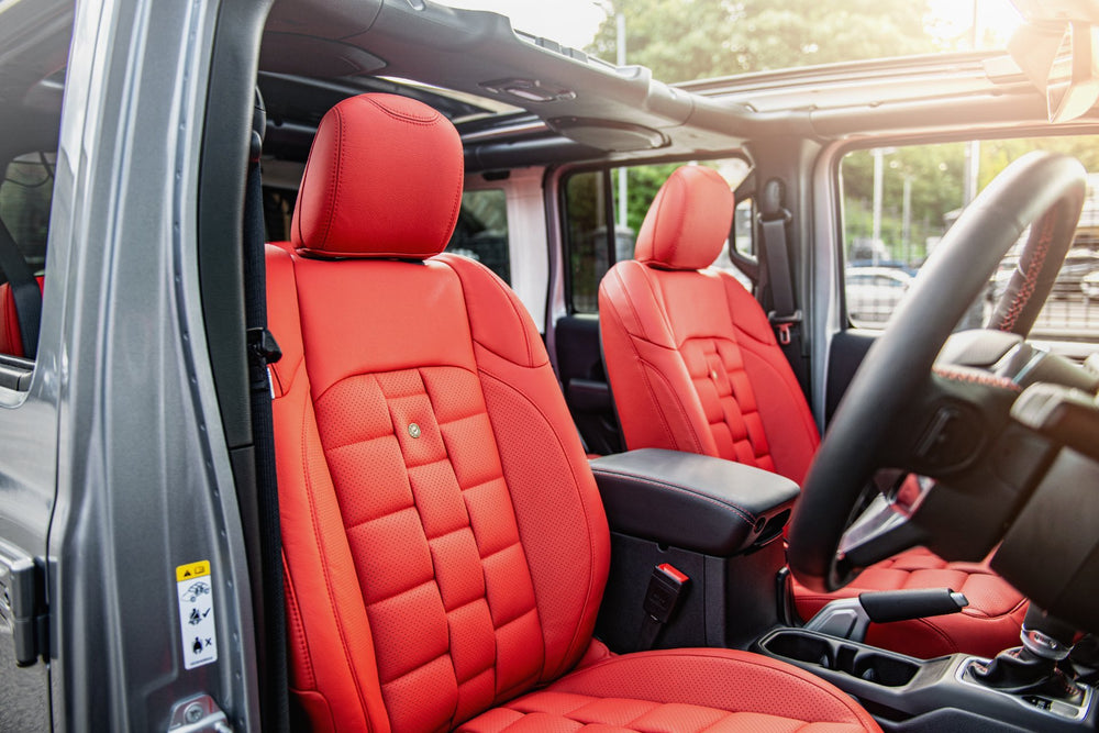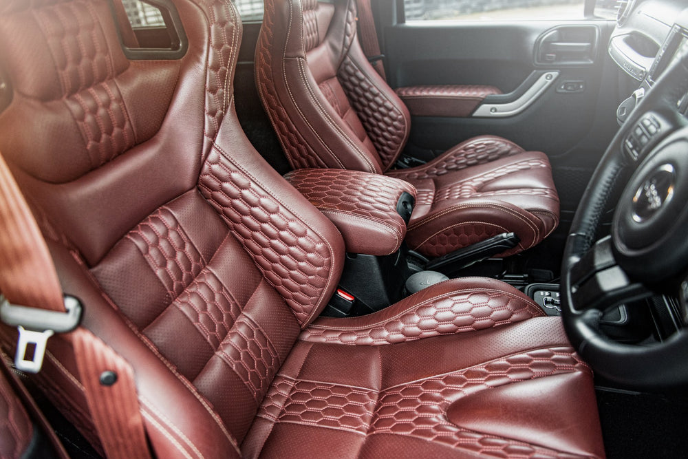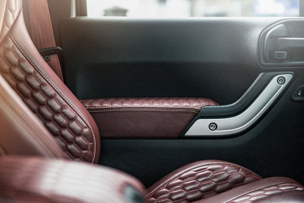 Be as true as the color red with the quilted and perforated 3D modular design of the luxury leather interior of the Jeep Wrangler by Chelsea Truck Company.