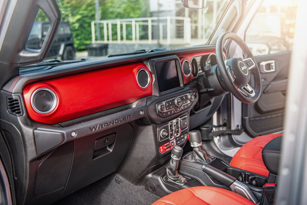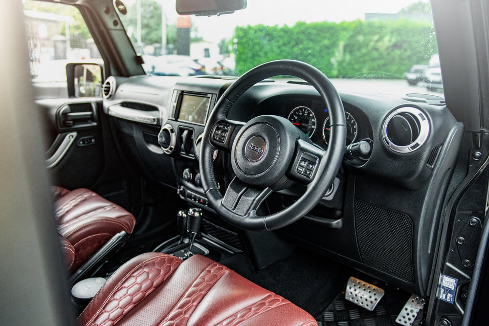 Day or night. Transfer effortlessly from business to pleasure in the Chelsea Truck Company Jeep Wrangler Black Hawk with a rustic red interior. Designed to ensure an indulgent atmosphere.