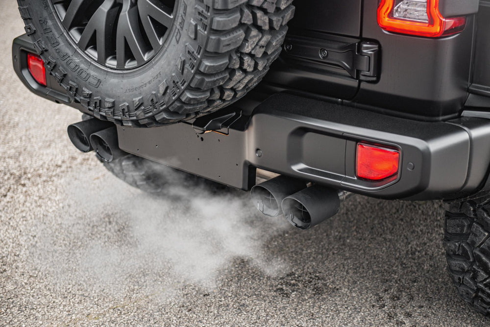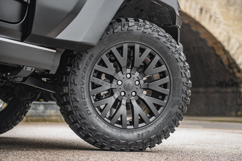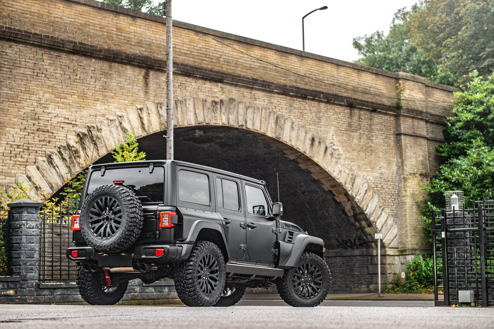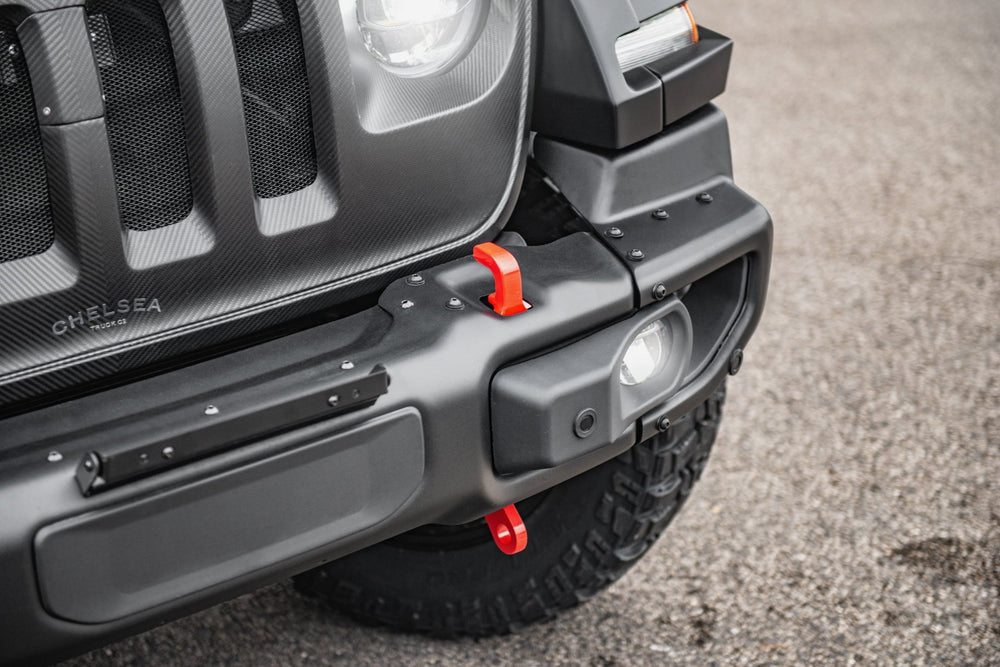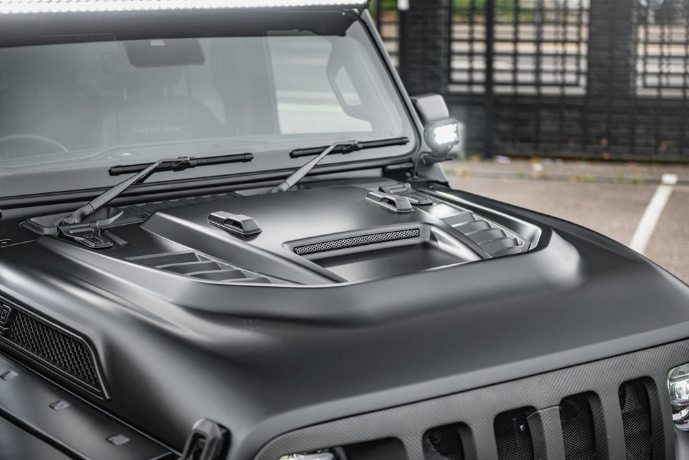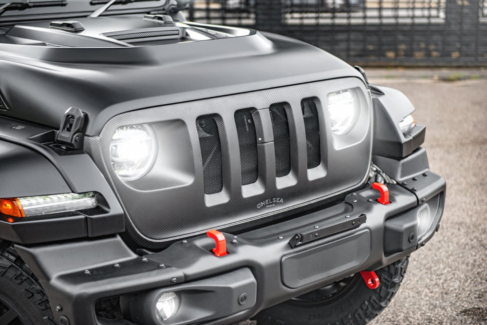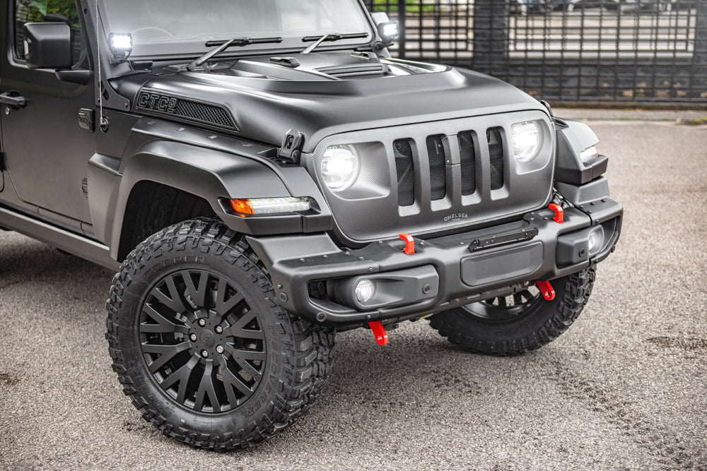 The satin black finish of the Chelsea Truck Company Jeep Wrangler black hawk expedition delivers a shimmering quality, creating natural dark and light contours.