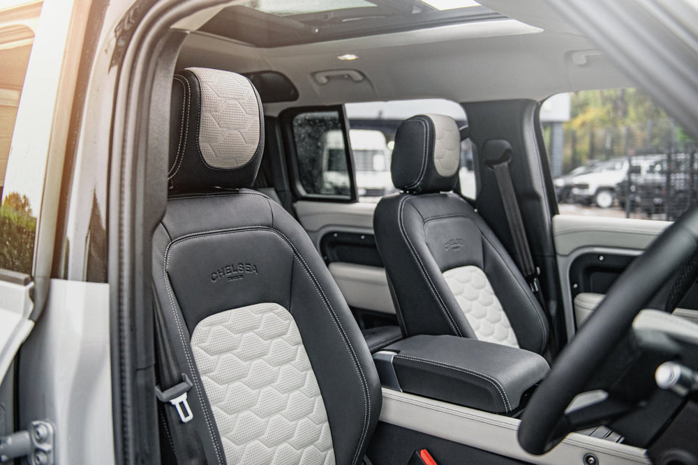 Transform your Land Rover Defender 110 with Project Kahn, your ultimate auto spare destination across the UK. Introducing the Land Rover Defender 110 Leather Interior – a seamless blend of rugged capability and luxurious comfort. Immerse yourself in premium leather craftsmanship, elevating both style and refinement. Explore more and redefine your driving experience with unmatched elegance, exclusively with Project Kahn.