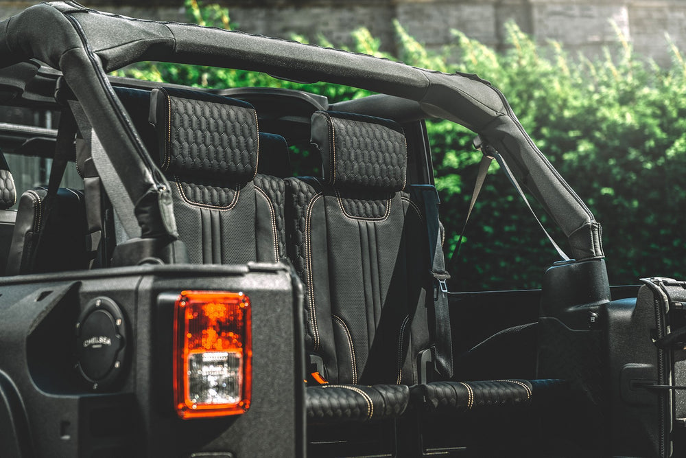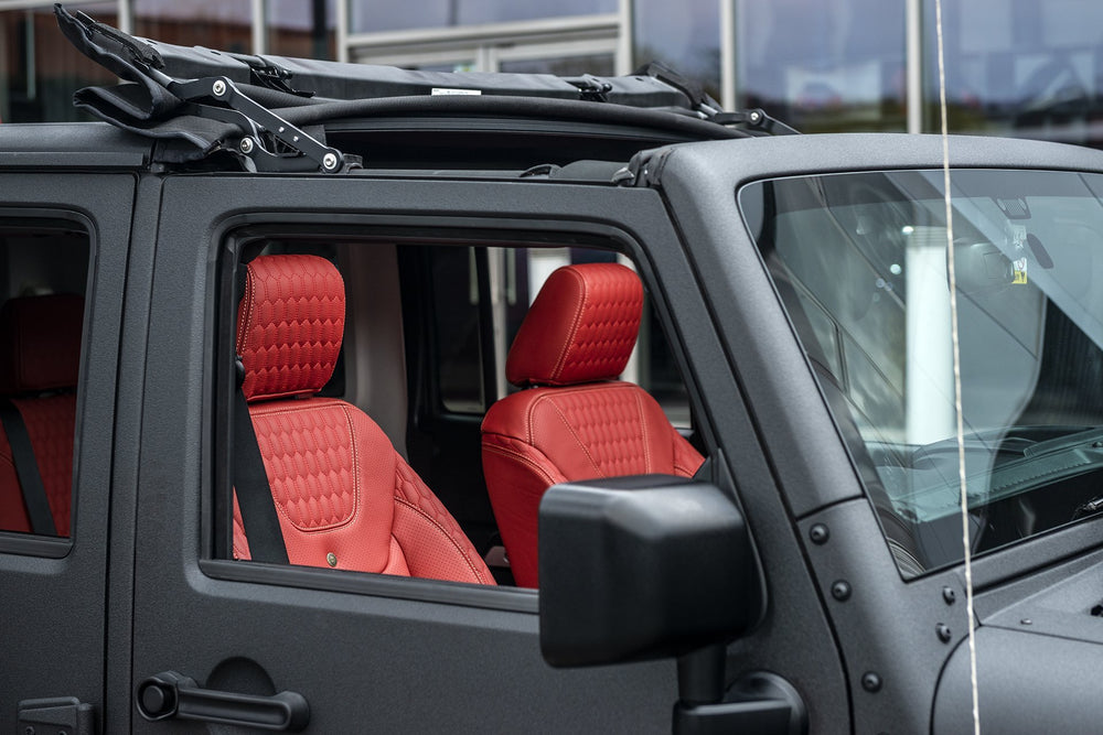 Experience the top of automotive luxury with the Jeep Wrangler JK 2-Door Black Hawk Leather Interior by Project Kahn® – a testament to our commitment as the world's premier automotive fashion house. At Project Kahn, we continuously curate the finest bespoke automobilia, all meticulously developed in-house by our team of specialist designers at Kahn Laboratories.Step into the driver's seat and immerse yourself in the peak of comfort and style. The Black Hawk Leather Interior for the Jeep Wrangler JK 2 Door is a reflection of our head designer, Afzal Kahn's, unparalleled vision and artistry. Each stitch, contour, and detail is crafted under his expert guidance, ensuring that your driving experience is not just a journey but a celebration of automotive excellence.Indulge in the luxury of a leather interior that goes beyond expectations. The copyrights reserved exclusively for Afzal Kahn and Kahn Design make the Black Hawk Leather Interior a unique expression of sophistication and exclusivity. It's more than an upgrade; it's a personalized statement that transforms your Jeep Wrangler JK 2 Door into a bespoke masterpiece.Enhance your driving experience with the Jeep Wrangler JK 2-Door Black Hawk Leather Interior – where every drive is a fusion of comfort, style, and individuality. Join the exclusive circle of automotive enthusiasts who appreciate the fusion of cutting-edge design and uncompromising craftsmanship. Your journey begins with Project Kahn – where automotive fashion meets personal expression on the road.