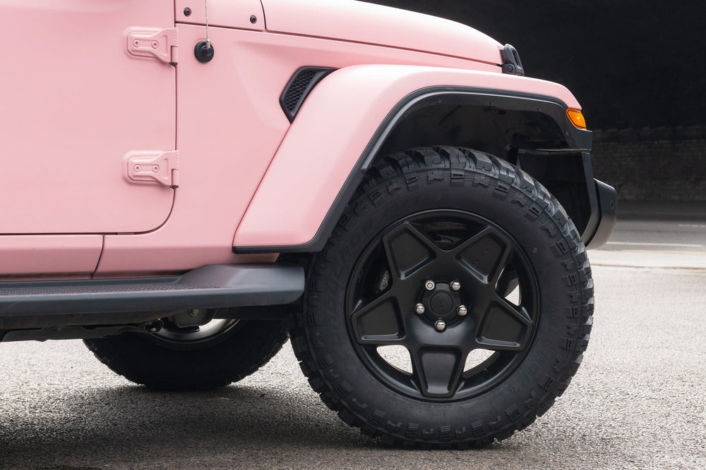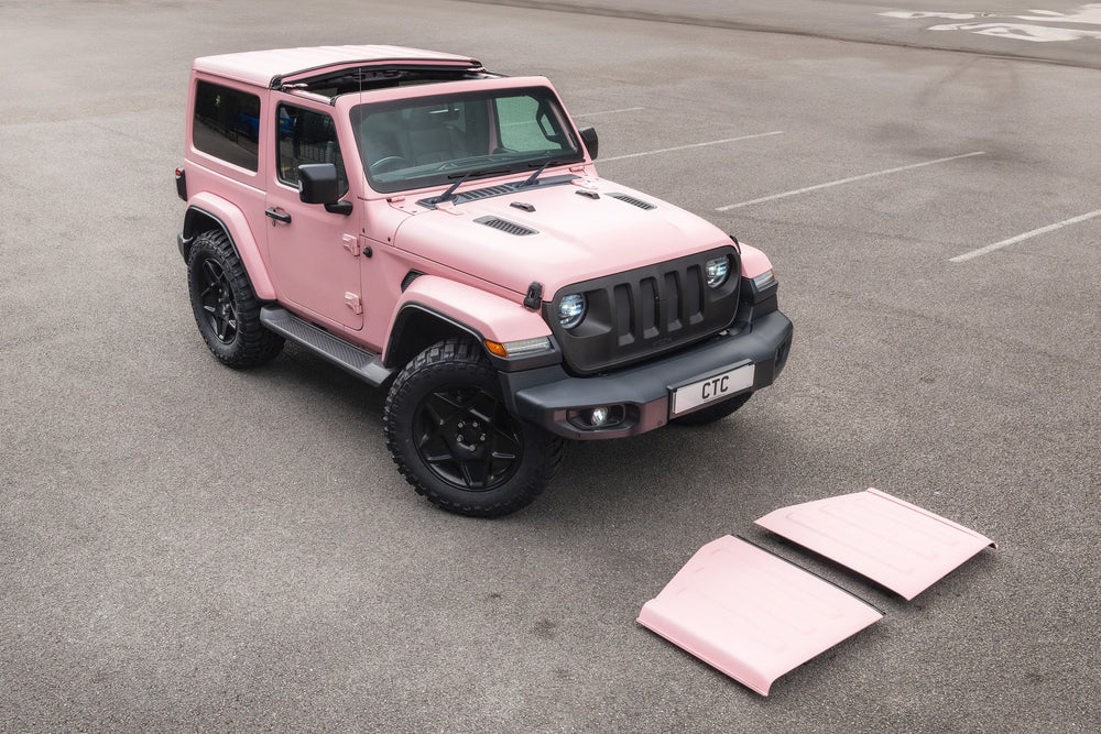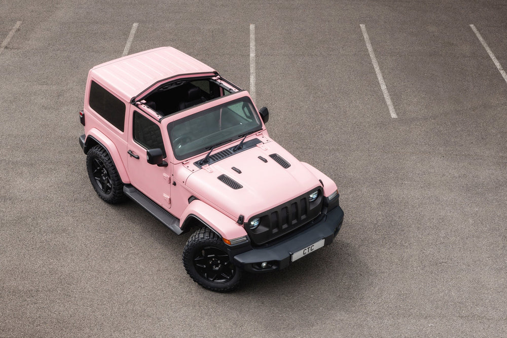 As blue as the sky, become one with the open road in the open top Targa style roof on the Chelsea Truck Company Jeep Wrangler. Light your inner fire with the magnificent orange leather interior.