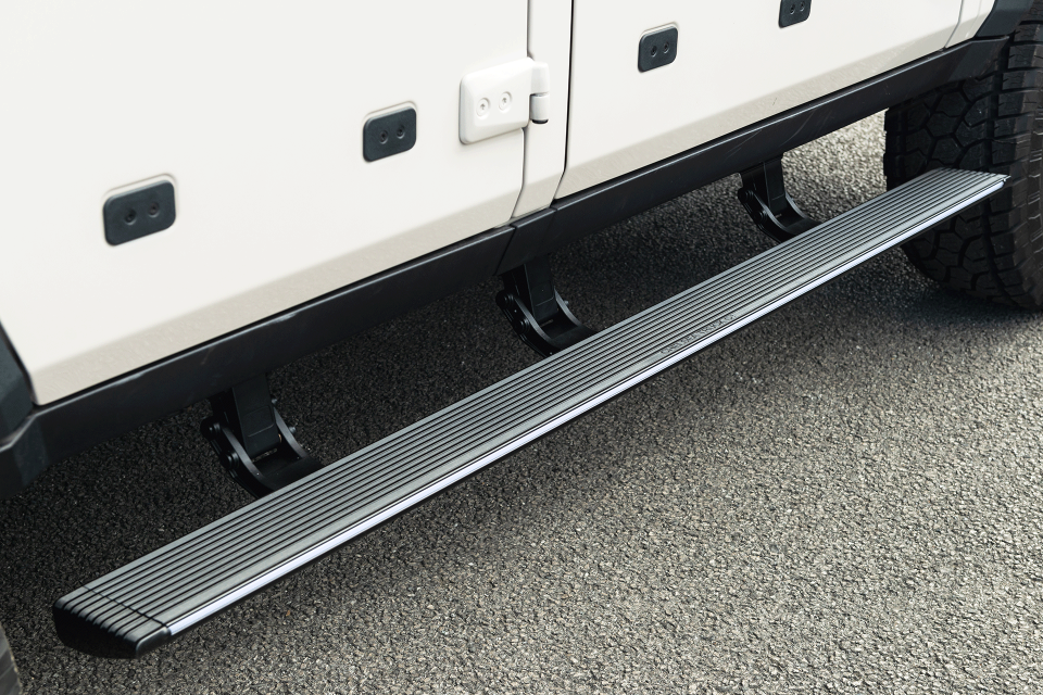 The side steps automatically extend when the doors open and retract neatly a few seconds after the doors close. A built-in safety stop function immediately halts movement if an obstruction is detected, helping prevent damage to the vehicle or the step mechanism.