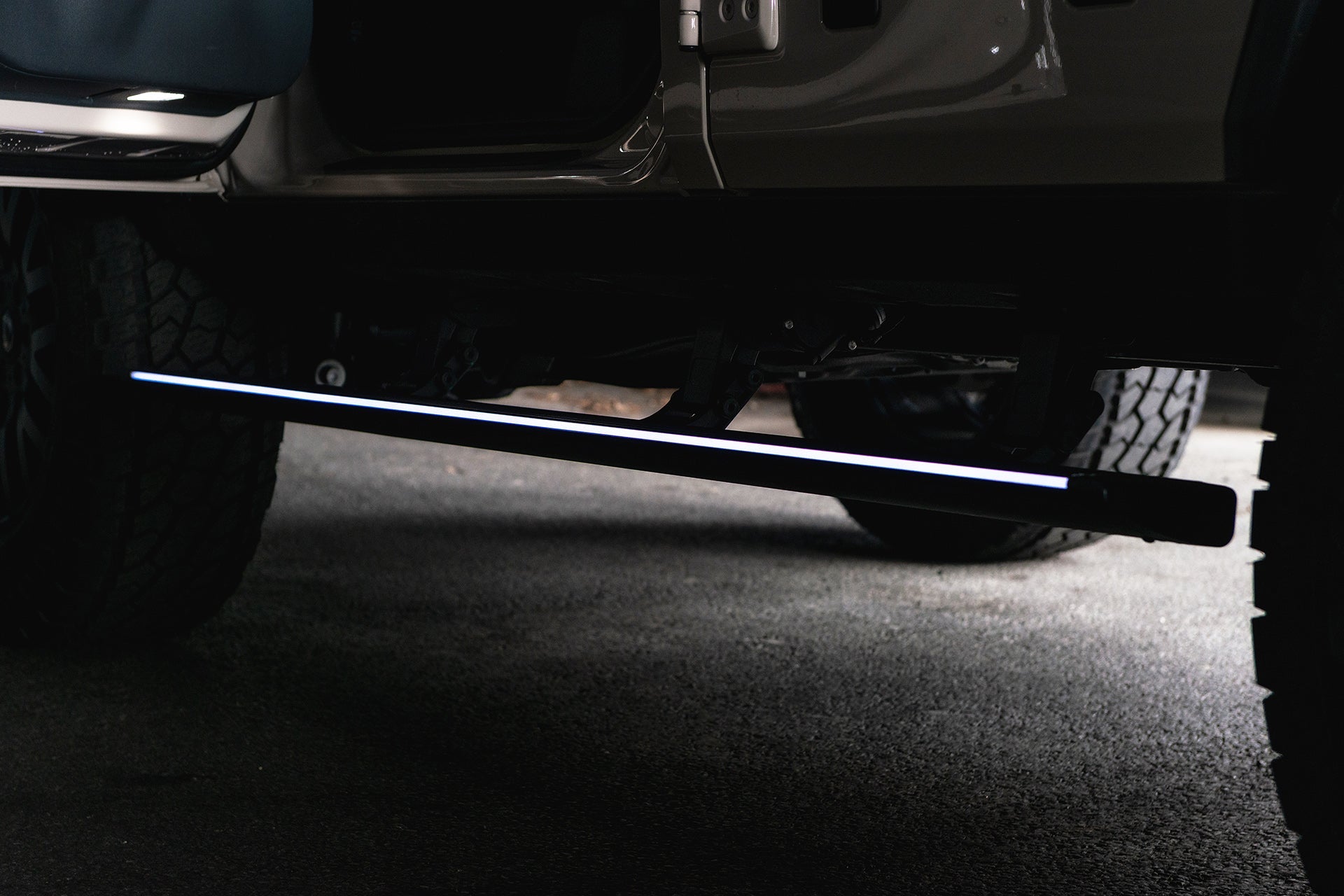The Chelsea Truck Company Electric Side Steps are engineered for the INEOS Grenadier (2023–Present), offering seamless automatic deployment, integrated safety functions, and modern illuminated styling. Designed to enhance everyday usability, the steps extend automatically when the doors open and retract neatly once the doors are closed.