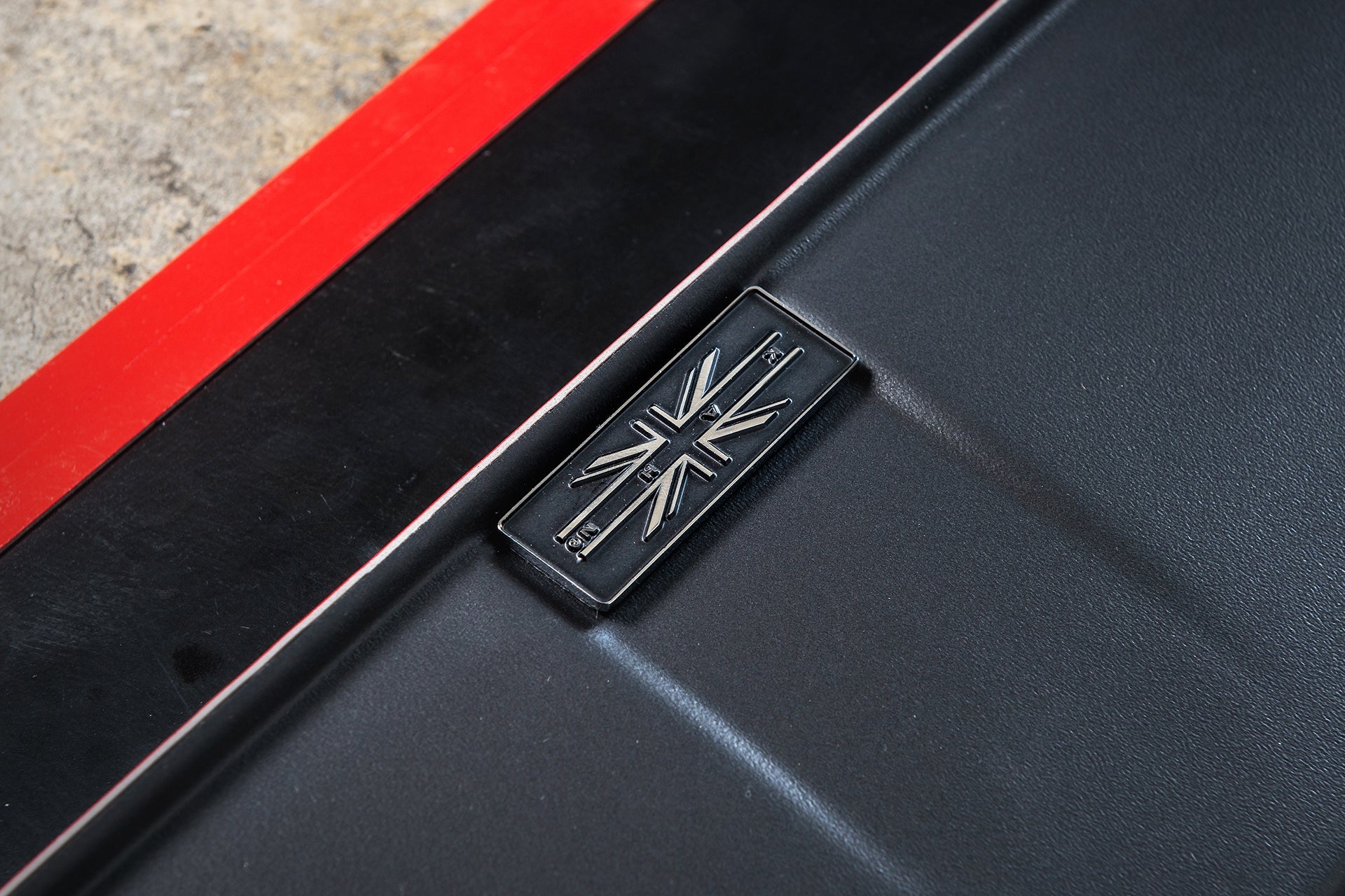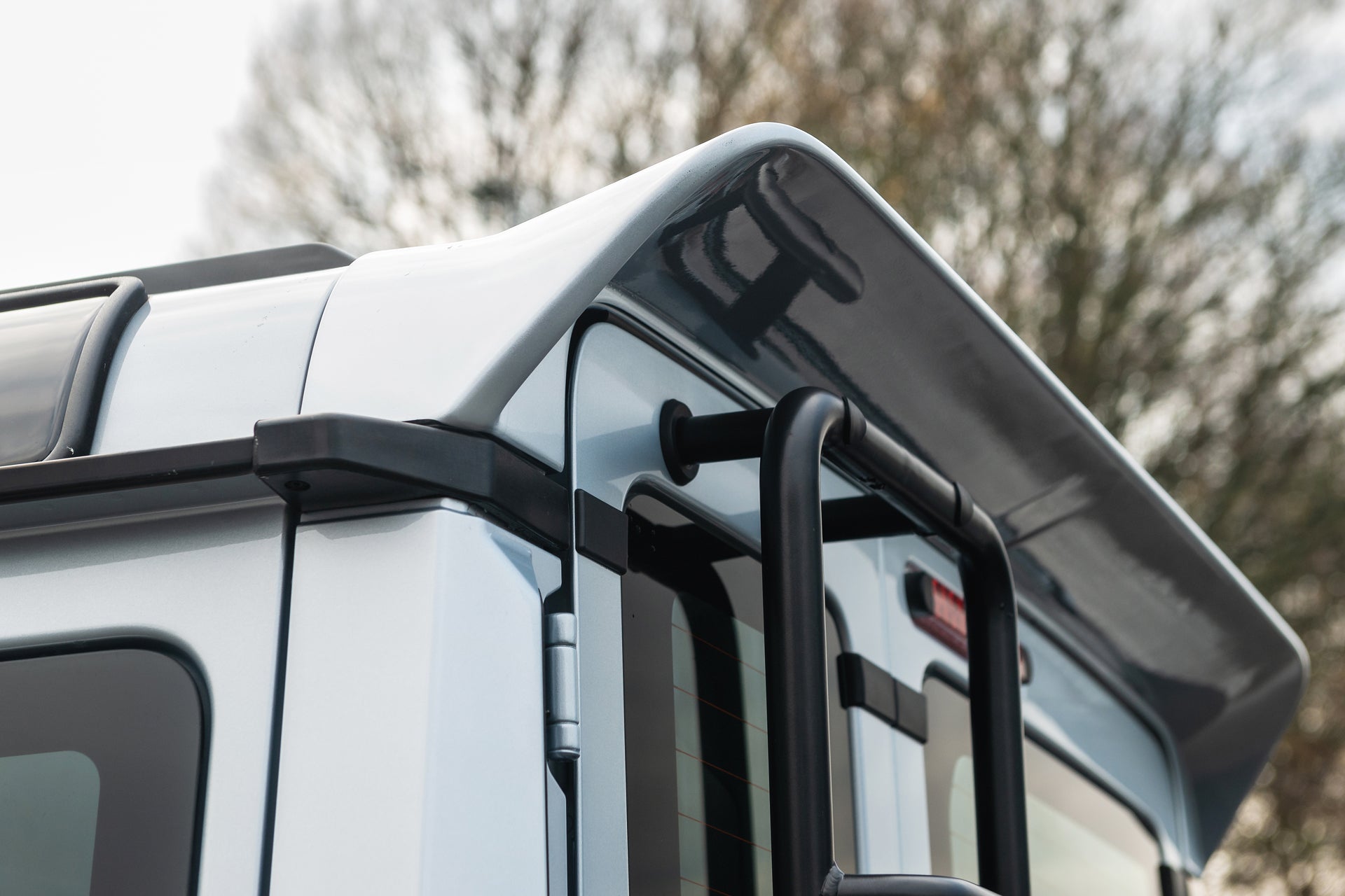 Finishing the exterior, the Chelsea Truck Co Hard Spare Wheel Cover features an engraved CTC logo and glossy finish, providing protection with a premium aesthetic. KAHN® Union Flag badges, crafted from zinc alloy and finished in polished chrome and satin black, are integrated across the arches, cowl and roof wing to deliver a subtle but distinctive British touch.