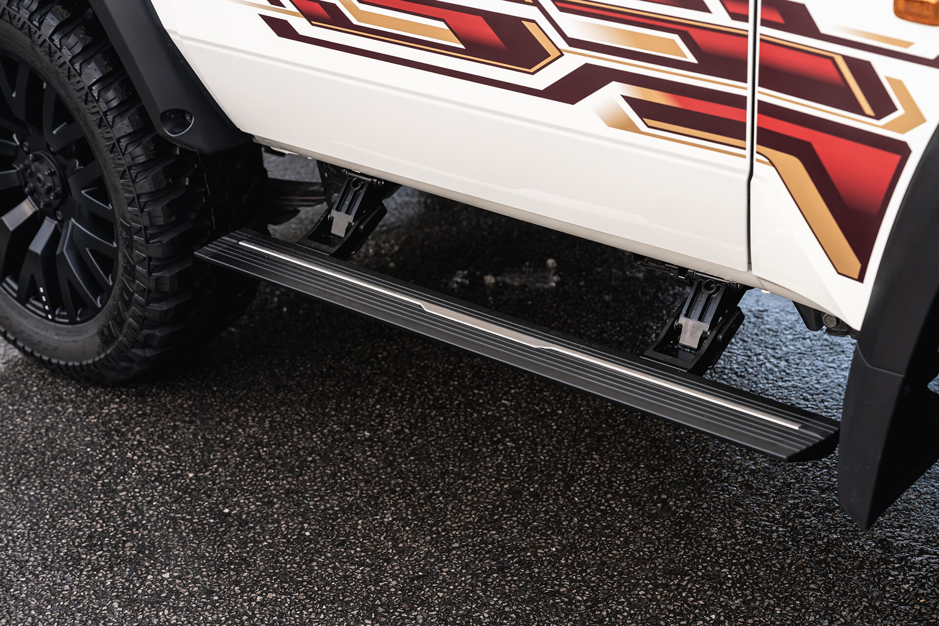 Enhance your Land Cruiser 70 Series with electric side steps that combine style, safety, and everyday practicality.